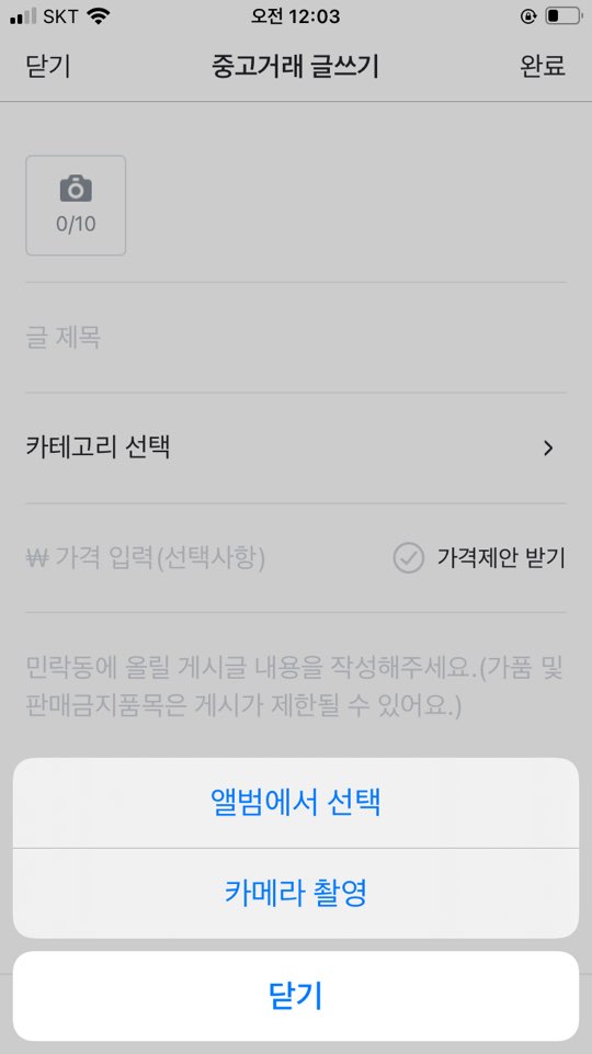 어플이기때문에 바로 카메라 촬영을 눌러 사진을 찍어 올릴 수 도 있구요~ 앨범에서 선택도 가능합니다!