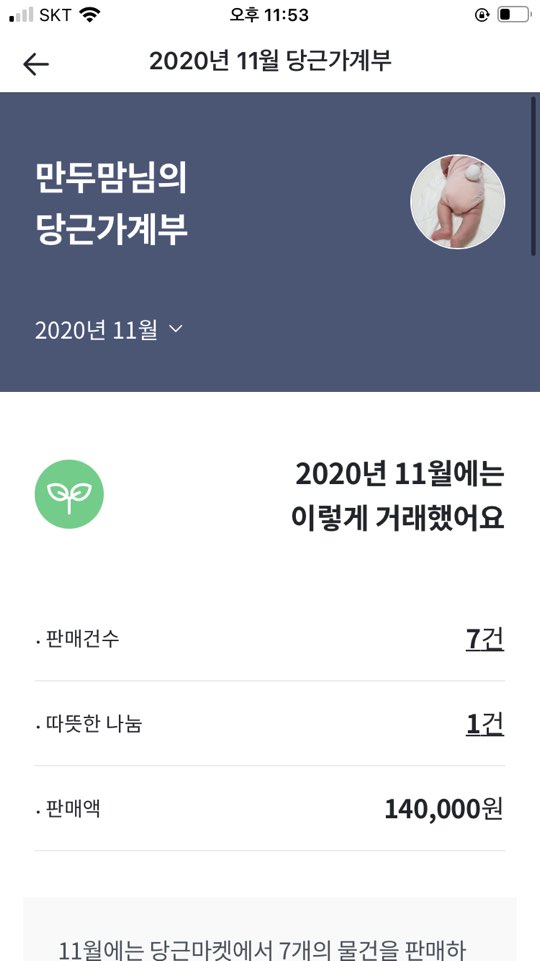 맨 왼쪽에 있는 사진이 홈화면인데요~ 오른쪽 상단에 종모양 아이콘 '알림'에 들어가면 월말정산으로 매월 판매실적을 당근가계부로 알려줍니다 : ) 저는 시작한지 1주일 만에 14만원 달성했어요!! 처음에는 폐기물 수거 신청하면 몇천원~만원 이렇게 오히려 돈을 주고 버려야하는데 혹시 필요한 사람이 있어서 가져가주시면 오히려 너무 감사하다....는 마음으로 아주 저렴하게 올렸는데! 돈이 모이니 생각보다 많아 깜짝 놀랐네용 ㅎㅎㅎ 괜히 기분 좋은거 있죠 : )
