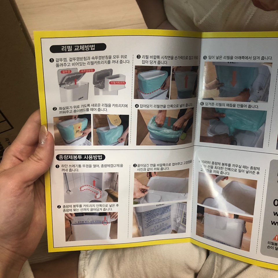 리필봉투 교체방법과 종량제 봉투 사용방법이 자세히 나와있는 설명서가 동봉되어있습니다 : )