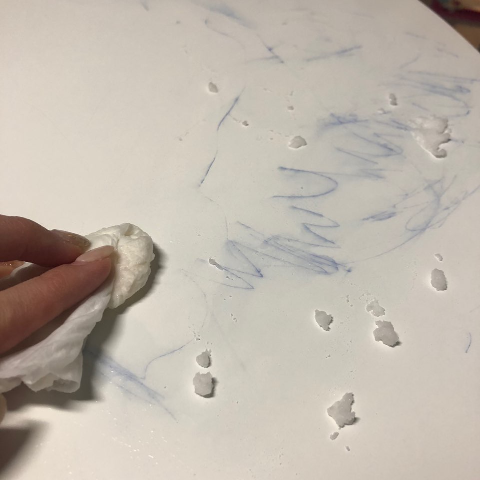 오늘 제가 식탁 위에 잠깐 볼펜을 올려놨는데 그 잠깐 사이에 저희 아이가 식탁에 열심히 낙서를 해놓았지 뭐에요 ㅠㅠ