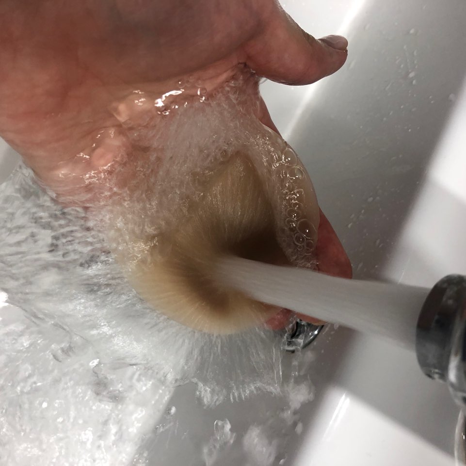 설명서에는 클렌징폼 이용하라고 쓰여있는데 저는 거품비누로 살살 문지른 후 물로 씻어 내었어요!