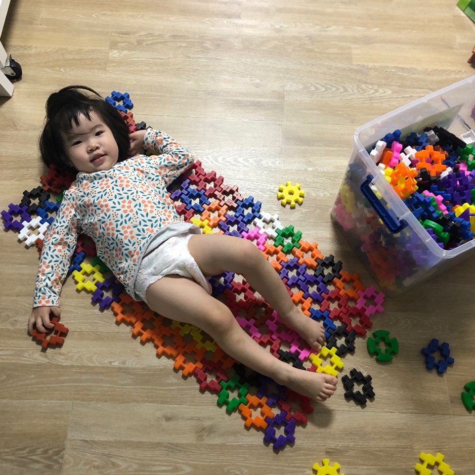 침대를 만들어서 낮잠놀이도하고 병원놀이도 하네요ㅎㅎ 상상속에 있는 물건을 만들며 창의력도 기르고 역할놀이도 할 수 있어 정말 좋은 것 같아요 : )