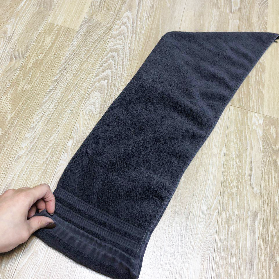 04. 접은 수건을 반대쪽으로 뒤집어서 한쪽면을 1/3정도 접어줍니다.