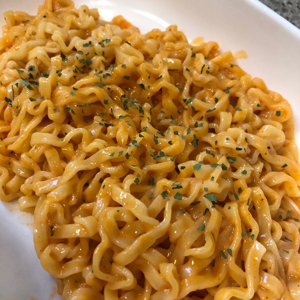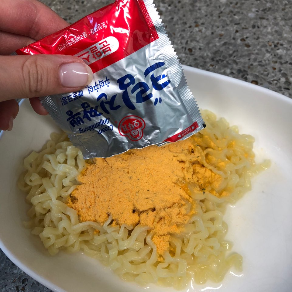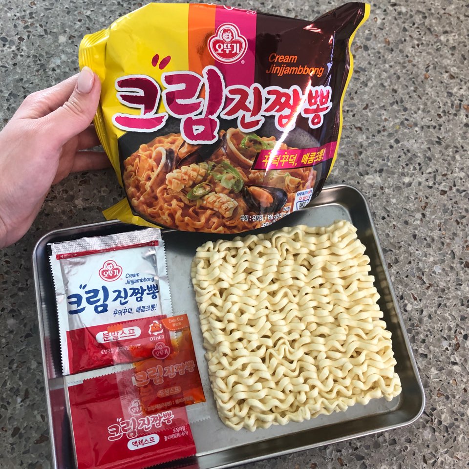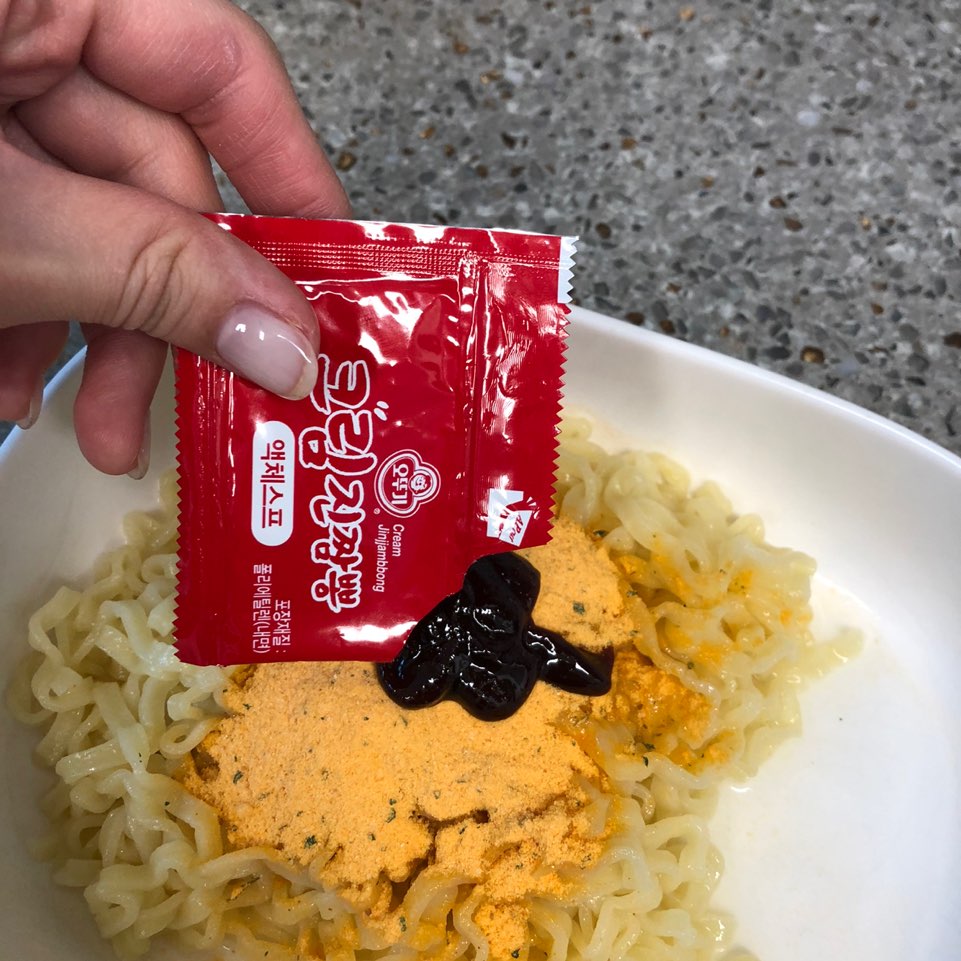 안녕하세요! 저는 까르보 불닭볶음면 덕후에요(급고백) ㅎㅎ 일주일에 2번 이상은 꼭 먹곤한답니다 ^^; 집에 까르보 불닭볶음면이 다 떨어져서 없었을때, 마트에서 장을 보고 있었는데요~ 마트 카트 길목마다 한가득 크림 진짬뽕을 이렇게 쌓아놓은 것 아니겠어요~? 비주얼이 까르보불닭이랑 비슷하게 생긴데다 자꾸 눈에 거슬리니.. 하나 집어와버렸습니다 : )
