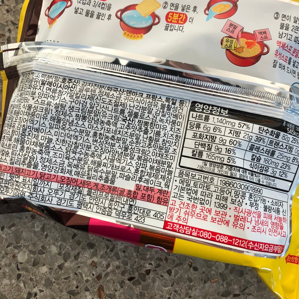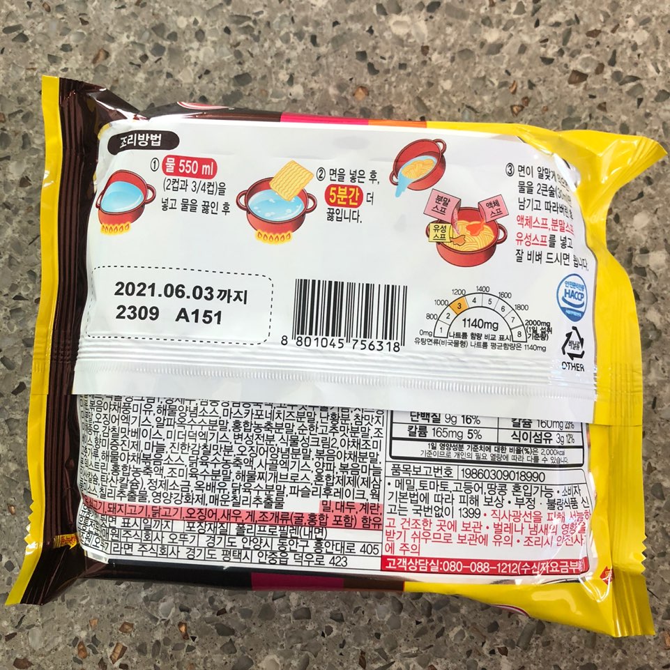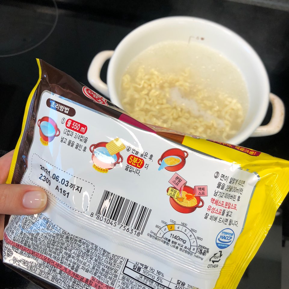 조리방법은 정말 간단해요! 짜빠게티 만드는 방법과 비슷하게 면을 끓여 물을 따라낸 면에 스프를 모두 넣고 비비면 됩니다 : ) 유통기한은 라면치고는 조금 짧은 편인 것 같네요~ 구입일자가 1/7이었는데 6/3까지로 5개월정도밖에 기한이 안남았어요! 영양정보를 보면 칼로리와 영양성분 비율을 확인해 보실 수 있습니다! 저는 칼로리 신경안쓰고 맛있으면 그냥 먹는편이에요.. (그래서 몸이 이렇게 불었네요......^^;)