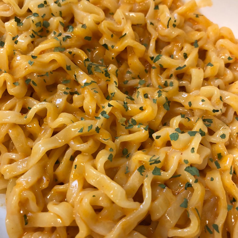 맛은 예상했던 대로 진짬뽕만의 감칠나는 불향이 강렬하게 퍼져있었습니다! 크림분말스프가 들어가있다보니 부드러우면서도 매콤함이 많이 중화되어 매운것을 잘 드시지 못하는 분들도 쉽게 접하실 수 있겠다는 생각이 들었습니다. 그러나 까르보 불닭볶음면에 익숙해져 있던 저에게는 자극적인 매콤함이 약해서 조금 아쉬웠습니다 ㅜㅜ 자극적인 것을 좋아하시는 분들은 까르보 붉닭볶음면을 추천드려요~~