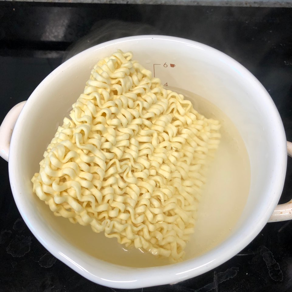 01. 끓는 물에 면을 넣고 5분동안 면을 삶아줍니다 : )