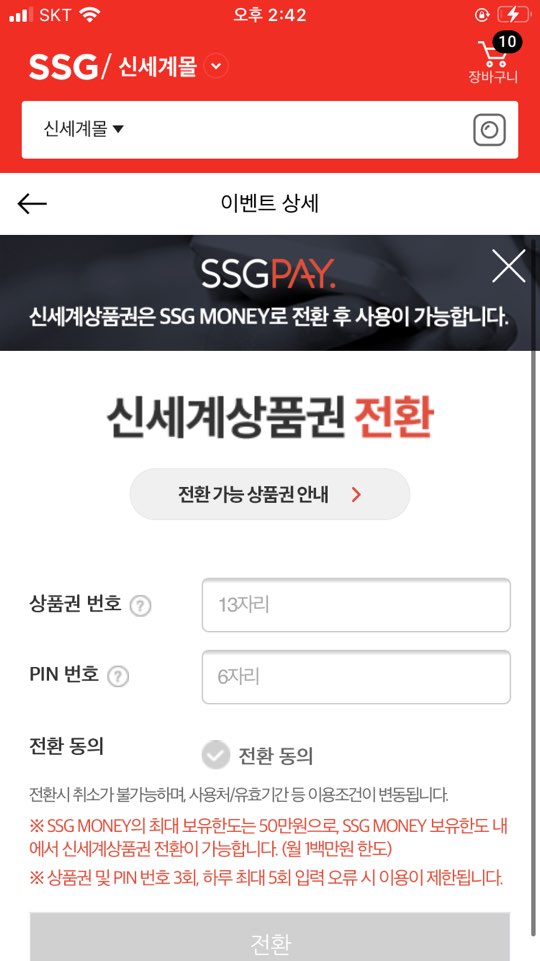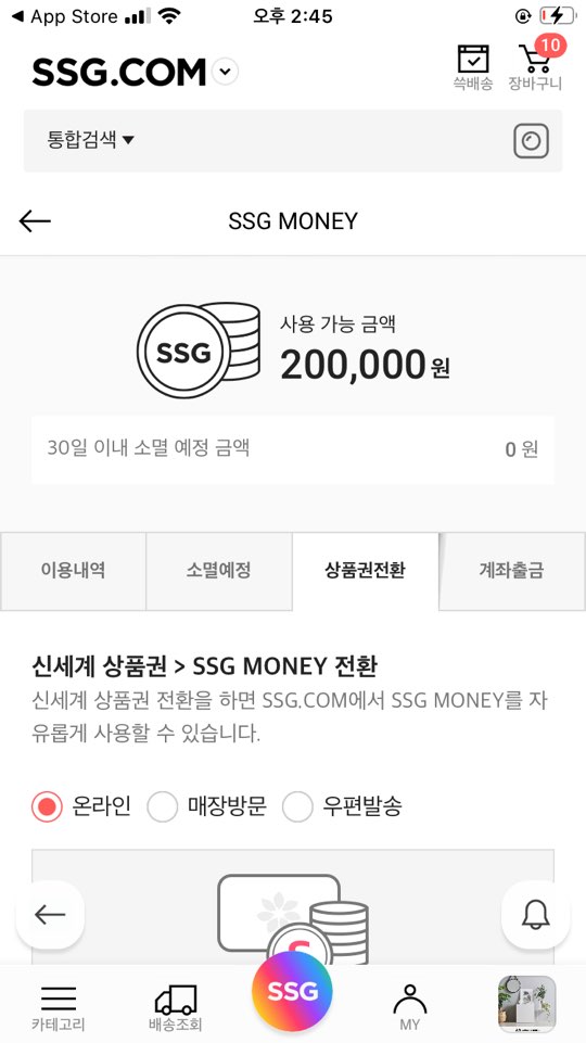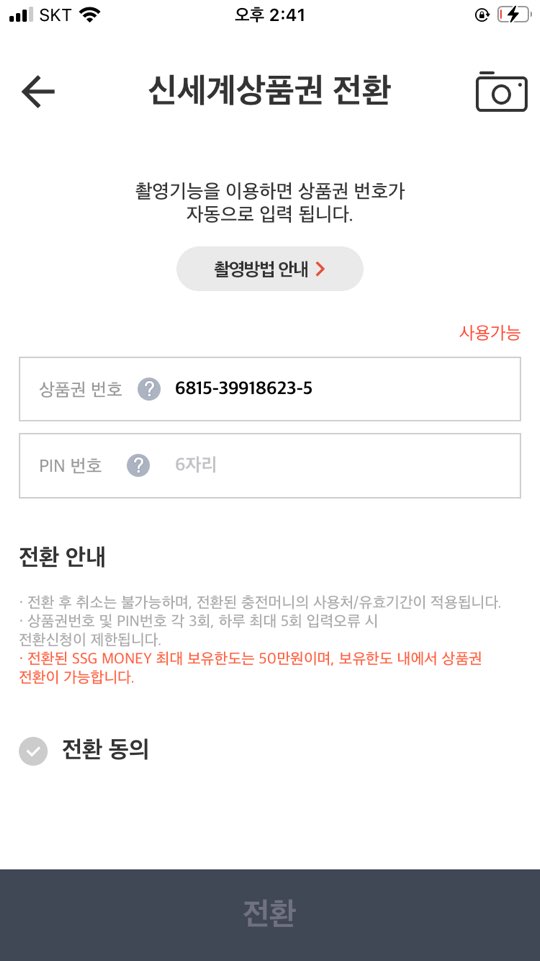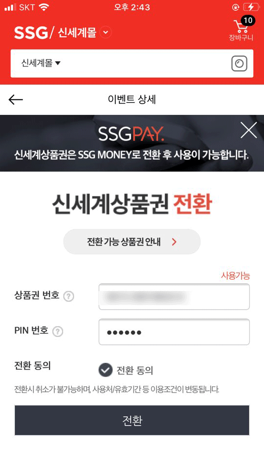 SSG PAY 슥페이 어플에서 상품권 전환 ::