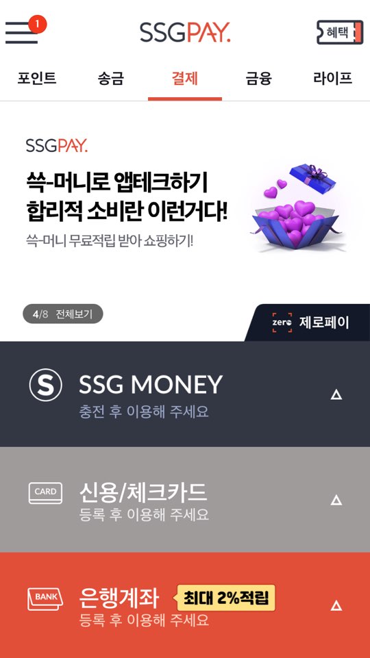 01. 홈화면 중간에 있는 'SSG MONEY'를 눌러줍니다.