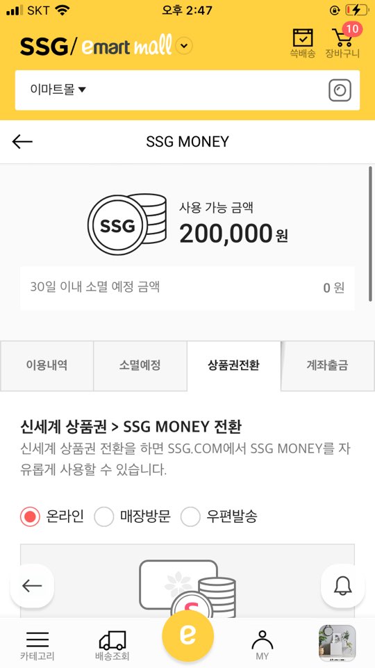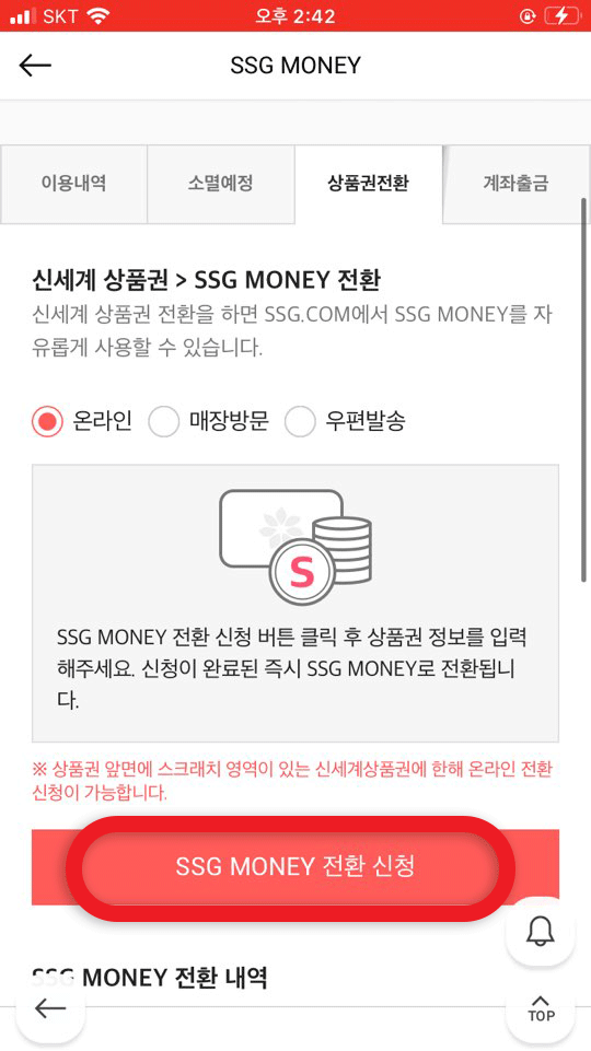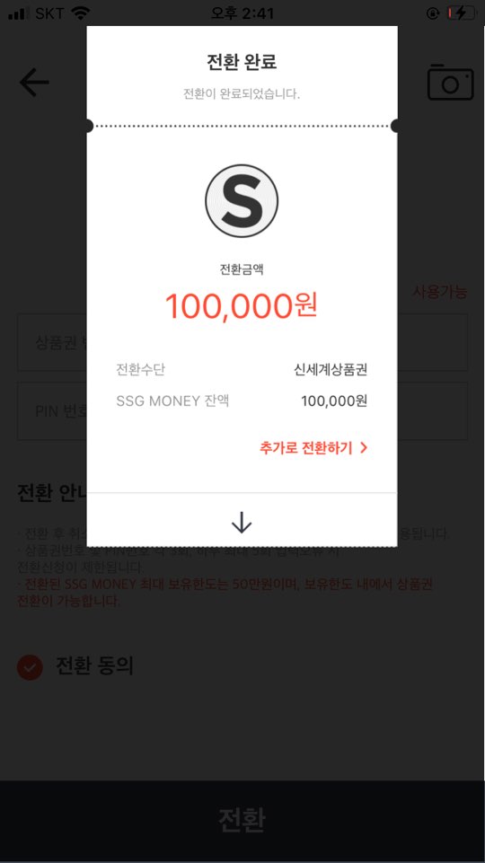 신세계몰/이마트몰/SSG.COM 어플에서 상품권 전환 ::