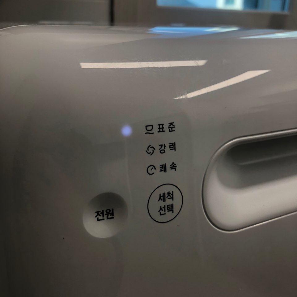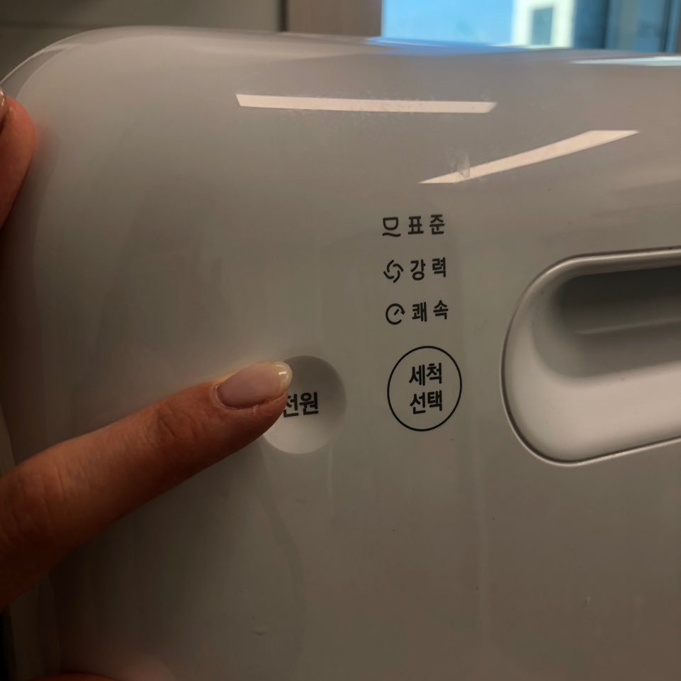01. 전원버튼을 눌러주고 '세척선택'버튼을 눌러 원하는 세척 방법을 선택해줍니다. 저는 표준으로 주로 돌리는데 30-40분정도 소요되는 것 같아요! 아기가 있는 분들은 젖병세척하기 정말 힘드시죠~ '살균'세척 기능이 있어서 젖병 넣고 살균으로 돌려주시면 젖병세척과 열탕소독도 할 수 있어요 ㅜㅜㅜ 세척이 다된후에 열어보면 따끈따끈 김이 나고 있다니까요~ 표준으로 돌려도 뜨거운물에 여러번 헹궈져서 세척후에 문열어보면 식기가 정말 뜨거워요ㅎㅎ 손설거지 하는 것보다 더 깨끗한 느낌이에요~