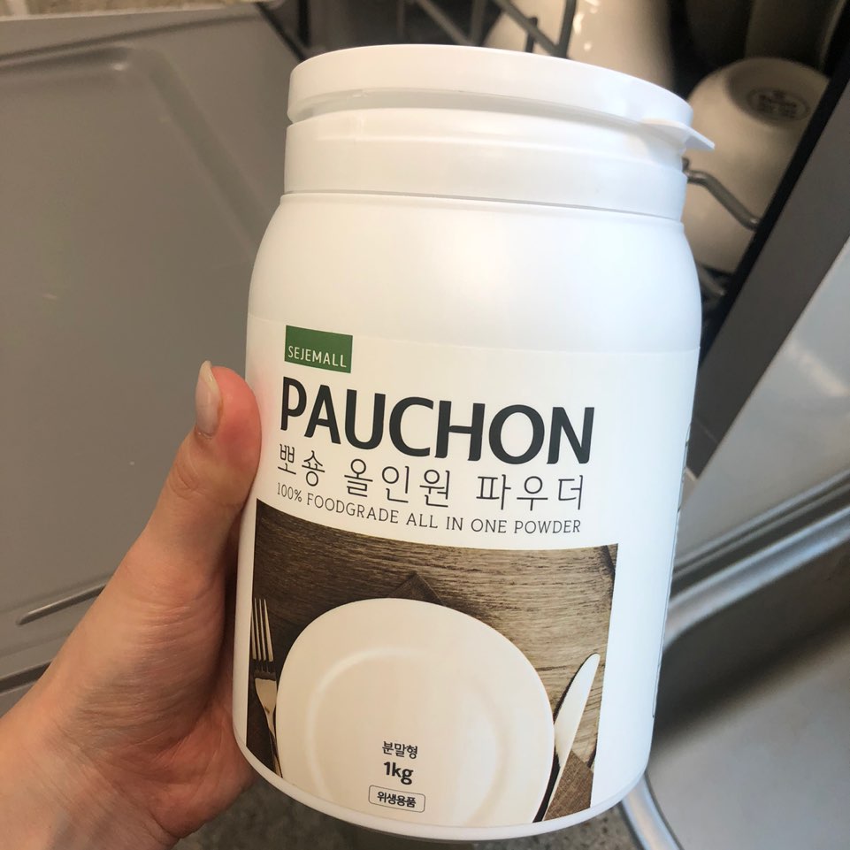 03. 식기세척기 문을 열고 식기세척기 전용 세제를 6g 넣어줍니다. 깨끗히 세척하신다고 절대 많이 넣지마시고 주방세제 넣으시면 안됩니다! 식기세척기 고장나용 ㅜㅜ 저는 뽀숑 올인원 파우더 세제를 사용하고 있습니다~ 쿠팡에서 로켓배송으로 구입했어요: ) 1종 세제로 야채,과일 세척도 가능하다고 하여 아기 설거지에도 안심하고 사용하고 있어요~