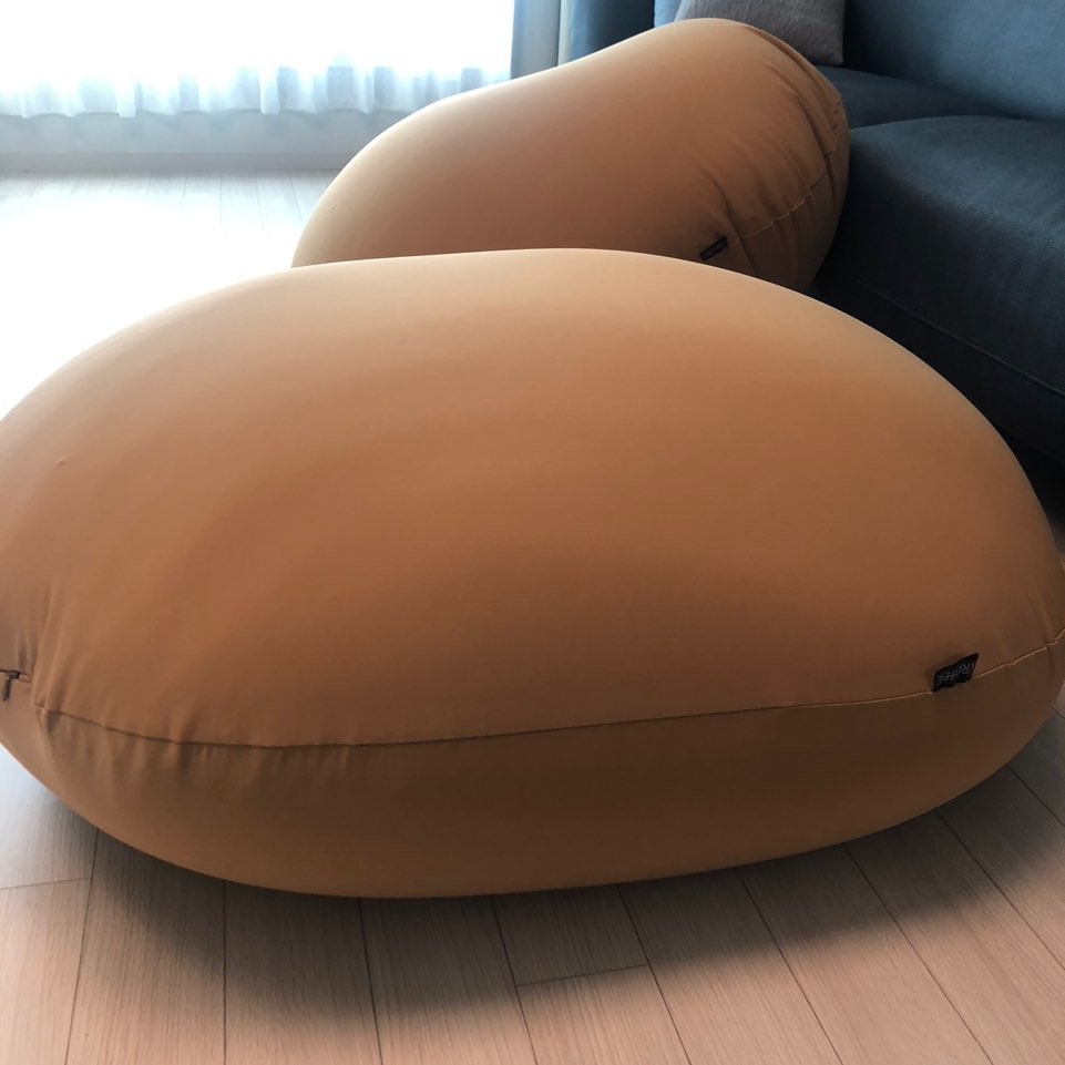 하나만 사기는 아쉽고 아이도 좋아할 것 같아 2개를 구입해 보았어요 : ) 브라운, 그레이, 카멜, 아이보리 4가지 색상 중 카멜색상을 저희 집 포인트 컬러로 두면 너무 예쁠것 같아서 선택했는데 예상대로 집이랑 정말 잘어울려요~ 원래 암체어같은 것도 생각해보았는데 부피가 너무 큰 것은 공간차지를 많이해서 집이 좁아 보일것 같더라구요~ 아이가 의자위에 올라가서 다칠위험도 있구요ㅜㅜ 그런데 빈백은 촉감도 좋을 뿐만아니라 안전하고 세탁도 간편하게 가능한 점에서 정말 잘산 것 같아요!