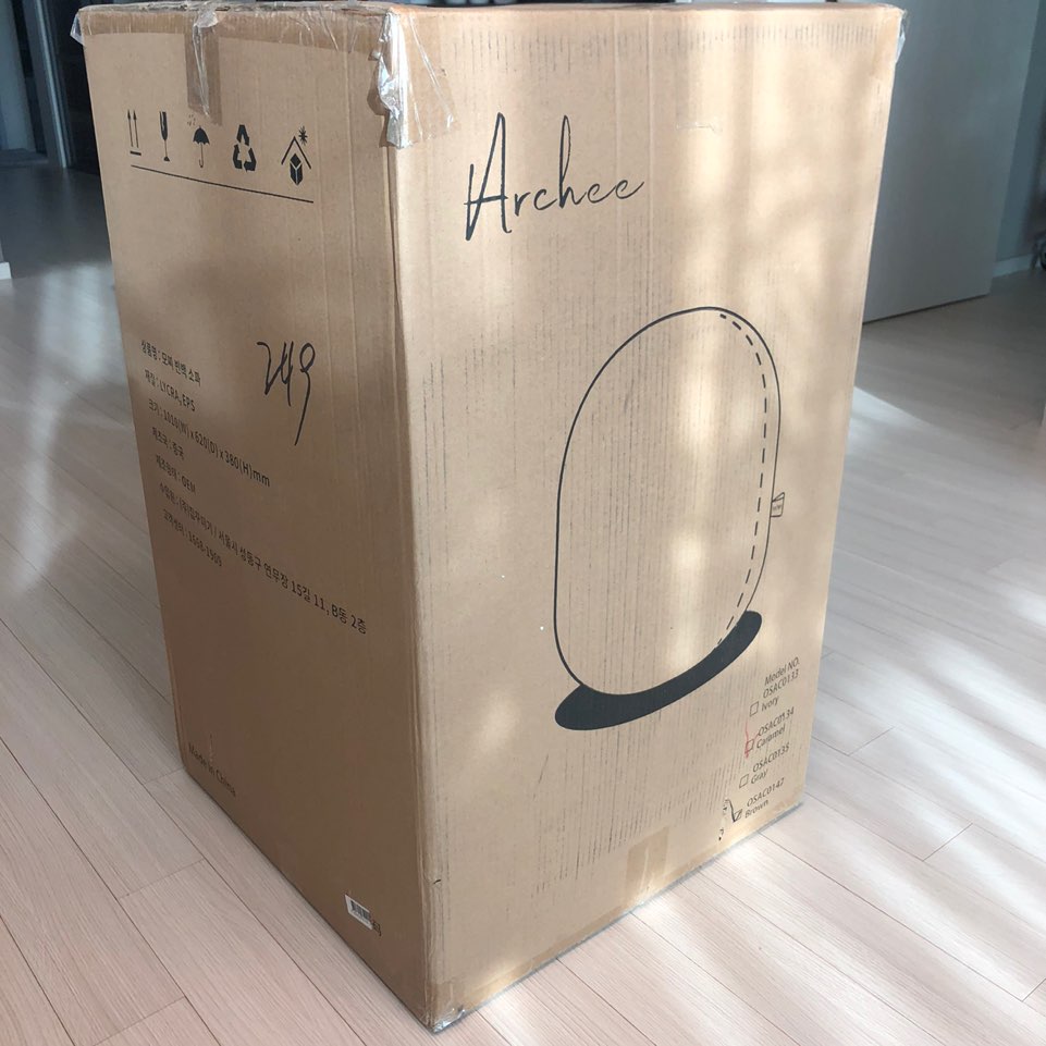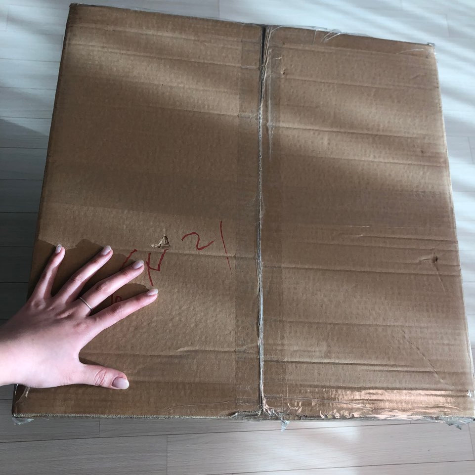 밖에 나갔다가 집에 오니 제 골반정도까지 오는 정말 커다란 상자가 놓여있더라구요 ㅎㅎ 무거우려나하고 상자를 밀어보았는데 가볍게 밀리네용~ 실제로 크기에 비해 무게가 엄청 가벼웠어요 : )