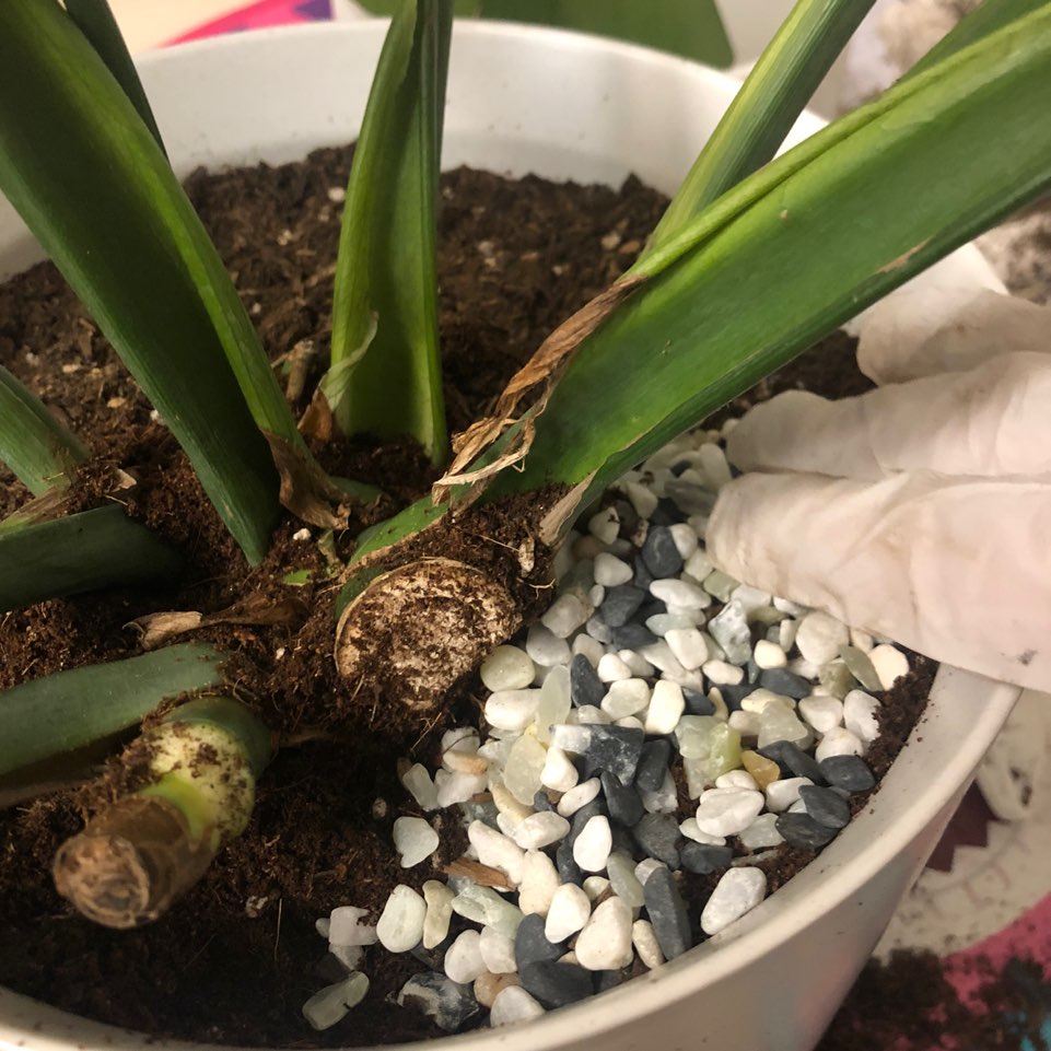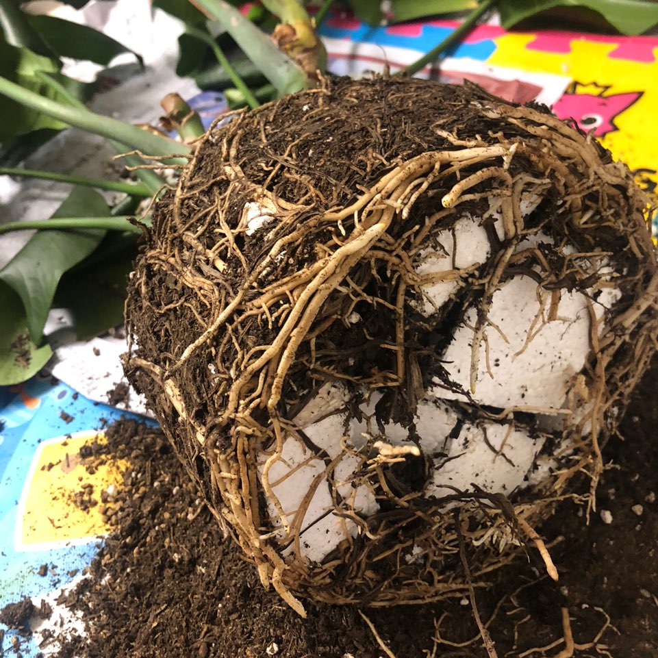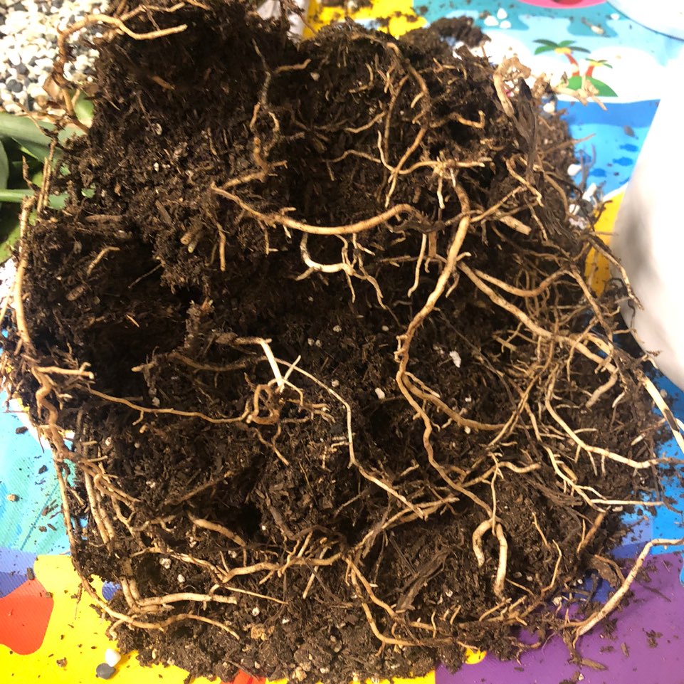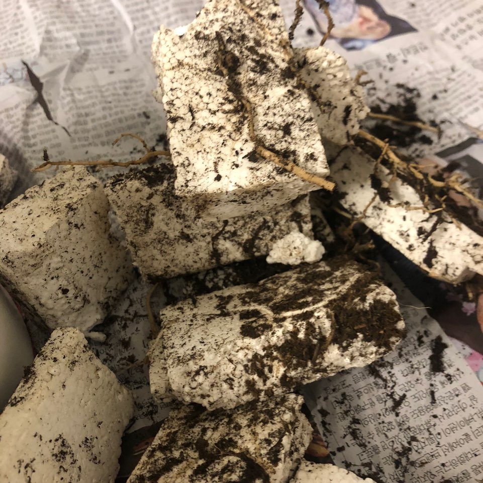 02. 화분에서 흙을 파내어 뿌리를 꺼내줍니다. 충격;; 부산 범일동 화훼시장에서 구입했는데 스트로폼이 잔뜩들어있네요. 흙반 스트로폼 반이에요..;; 좁은 공간에서 잔뿌리도 엄청 많이 내려있었어요.. 이런 좁은데서 살게하다니 여태껏 몰라본게 미안하네요 ㅠㅠ;;
