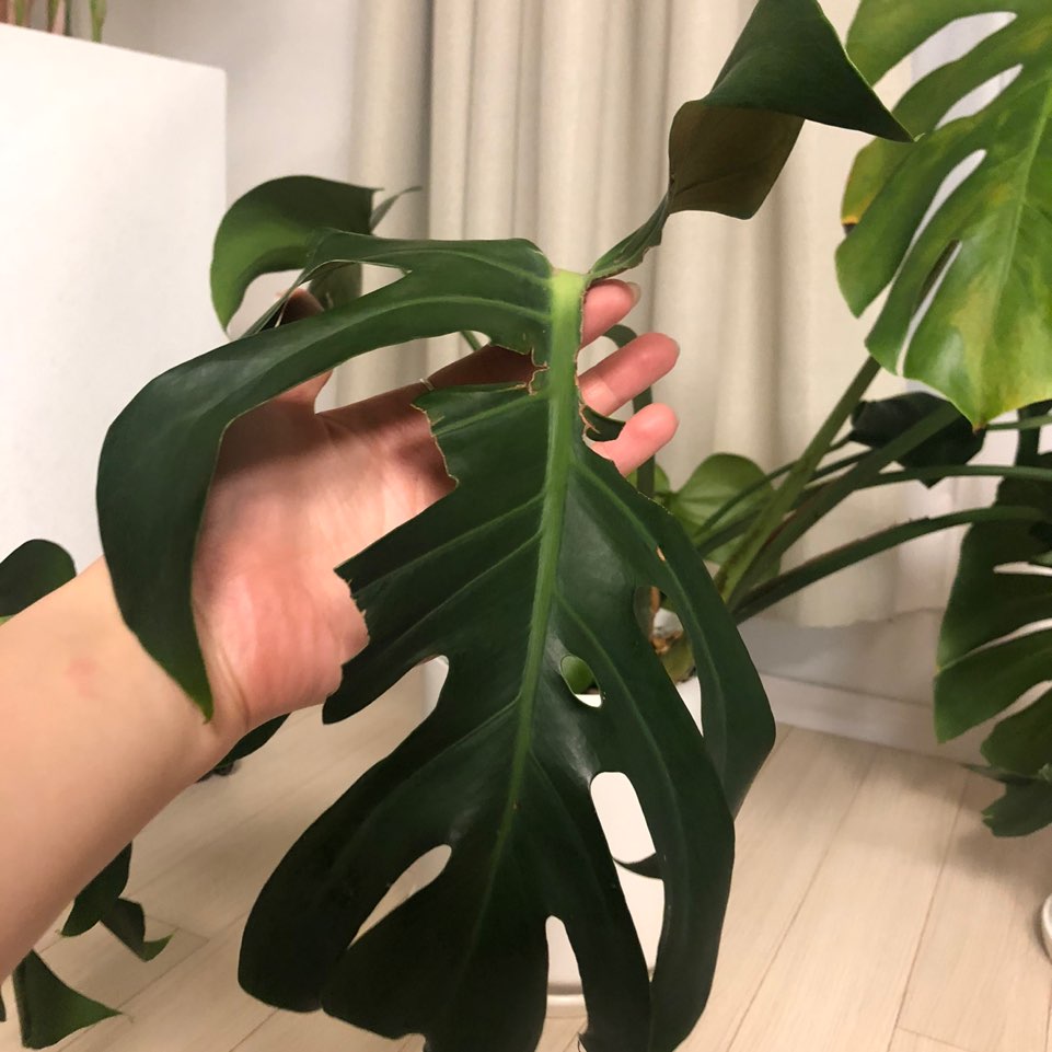 그리고 저희아이가 돌 즈음 호기심이 많던 시절,, 잠깐 한눈판 사이에 몬스테라를 이렇게 찢어놓았더라구요 ㅜㅜ 아직도 보면 마음이 짠해요 ㅜㅜ 보기에는 안좋지만 찢어진 것 빼고는 싱싱하게 살아있어 생명을 잘라내지는 못하겠더라구요ㅠ
