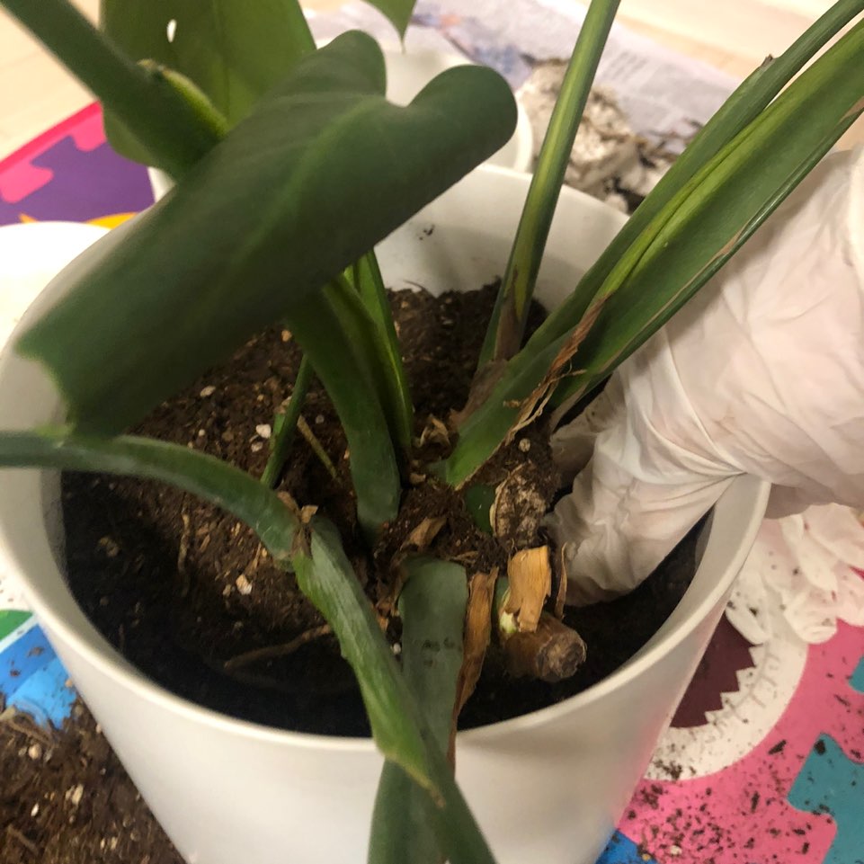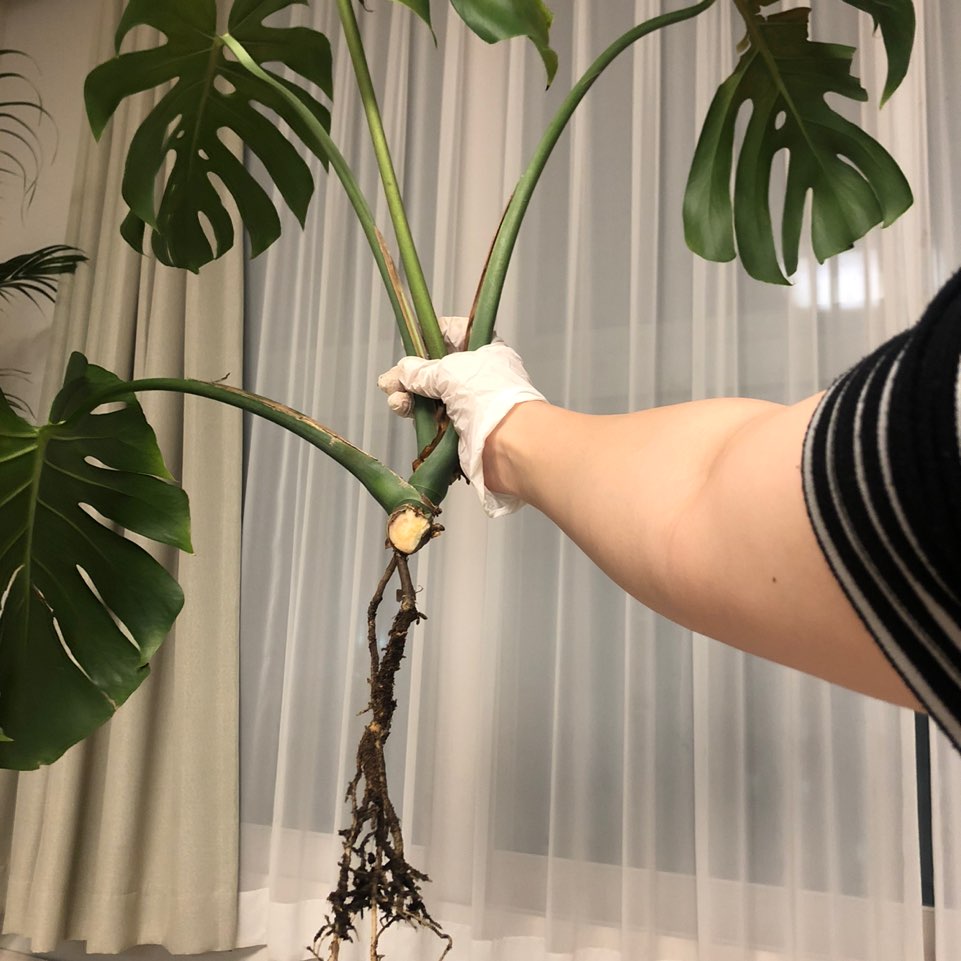 몬스테라는 생명력이 정말 강해서 흙이 아닌 화분 바깥으로 공중뿌리를 내곤 하는데요. 이렇게 공중뿌리가 포함이 되게 가지치기를 해주면 금새 뿌리를 내리고 자라나게됩니다~ 저는 균형을 잡아주기위해서 잎의 양이 많은 쪽을 뿌리와함께 잘라줄예정이에요.