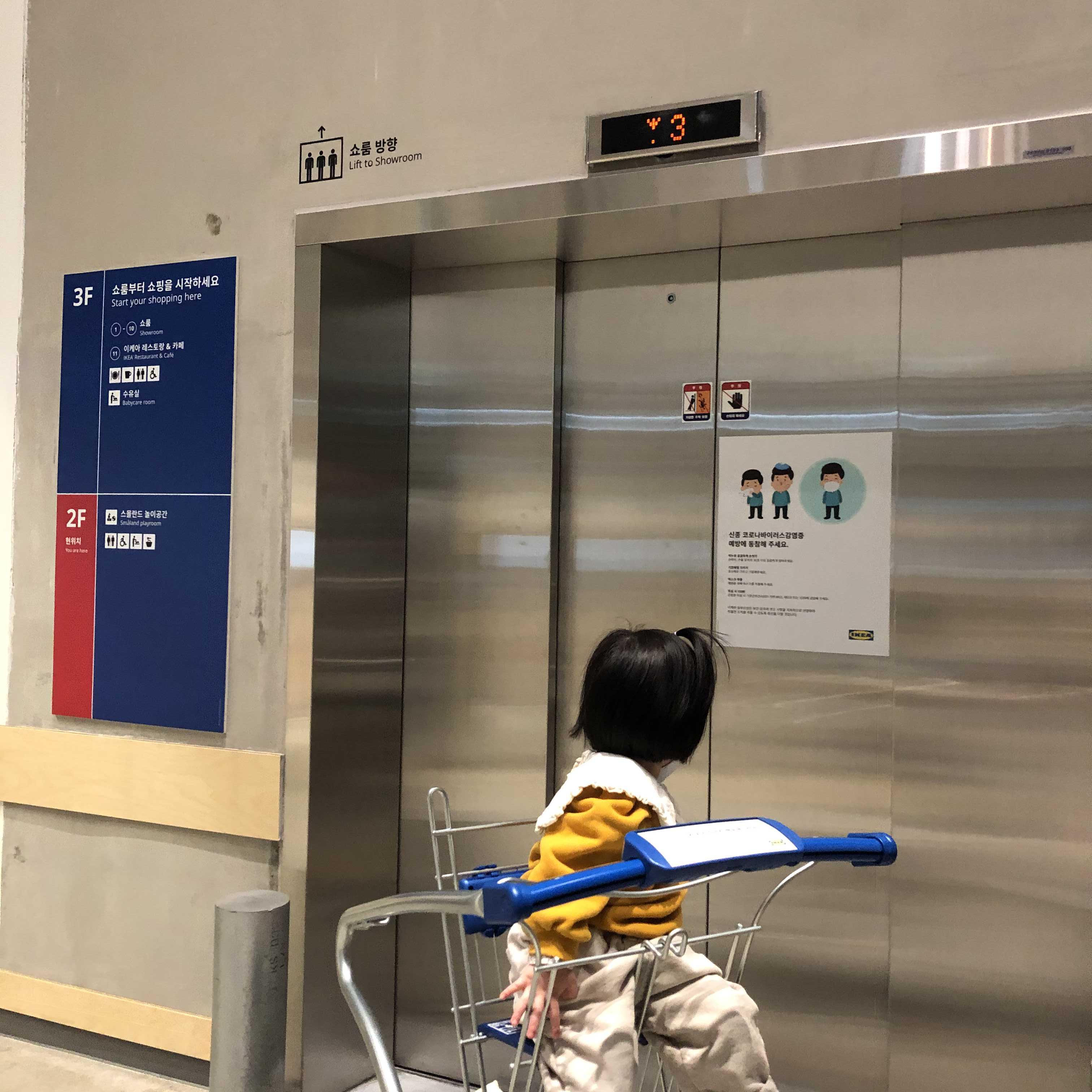 배부르게 밥을 먹은 뒤 쇼룸 구경을 위해서 2층에 있는 유아용 카트를 끌고 엘리베이터를 타고 올라갔어요 : )