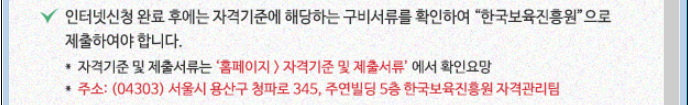 주소 (04303) 서울시 용산구 청파로 345, 주연빌딩 5층 한국보육진흥원 자격관리팀