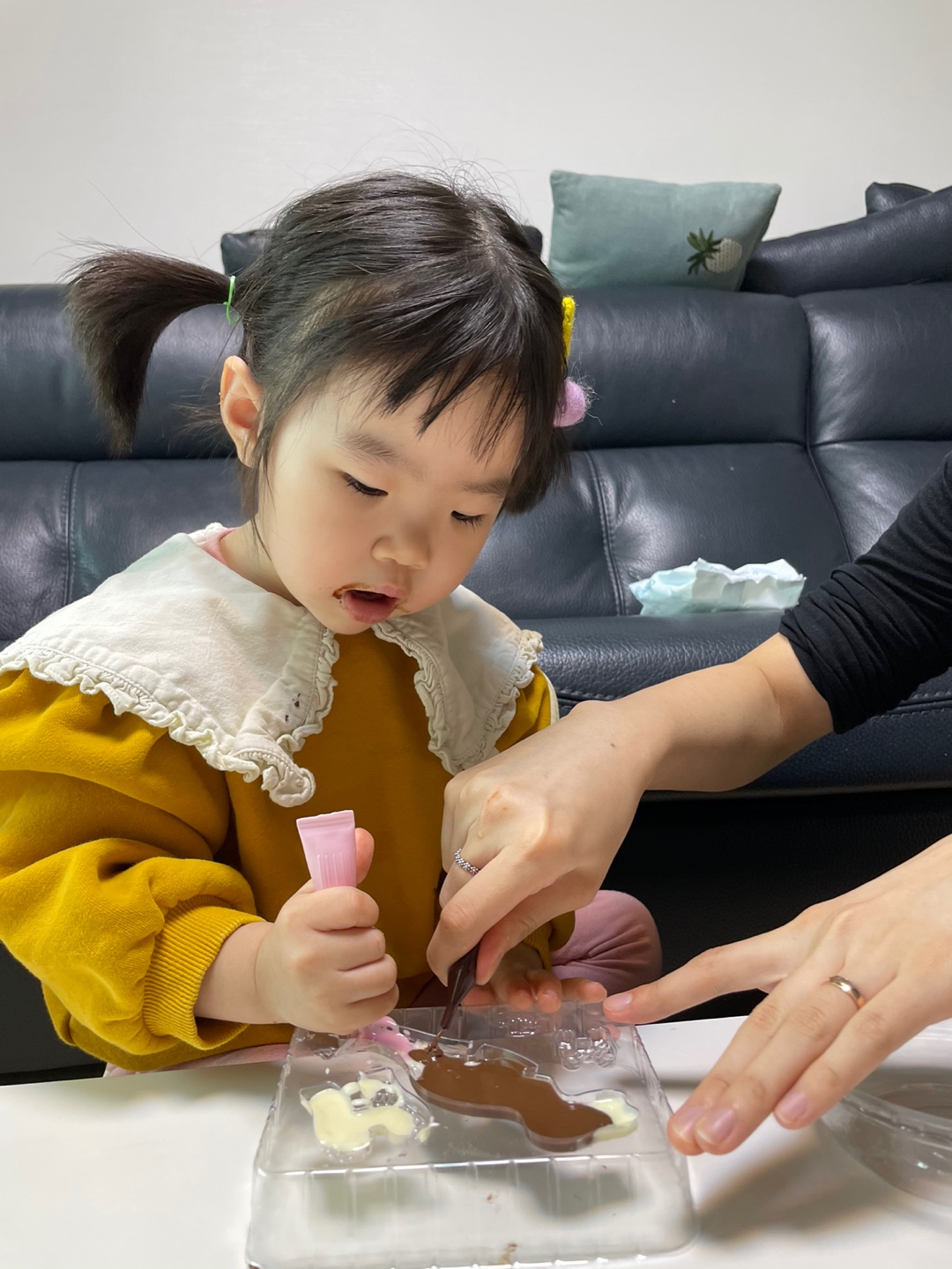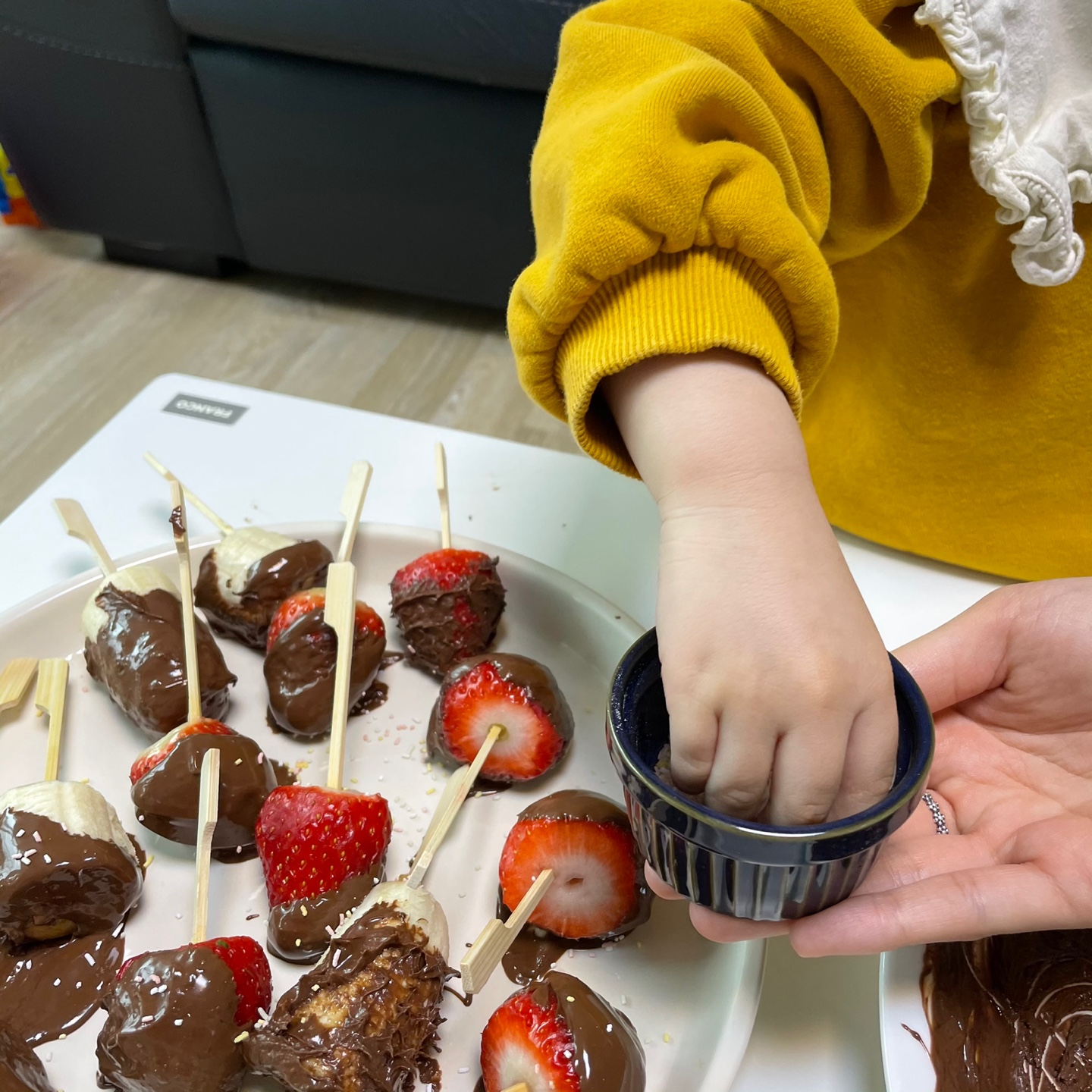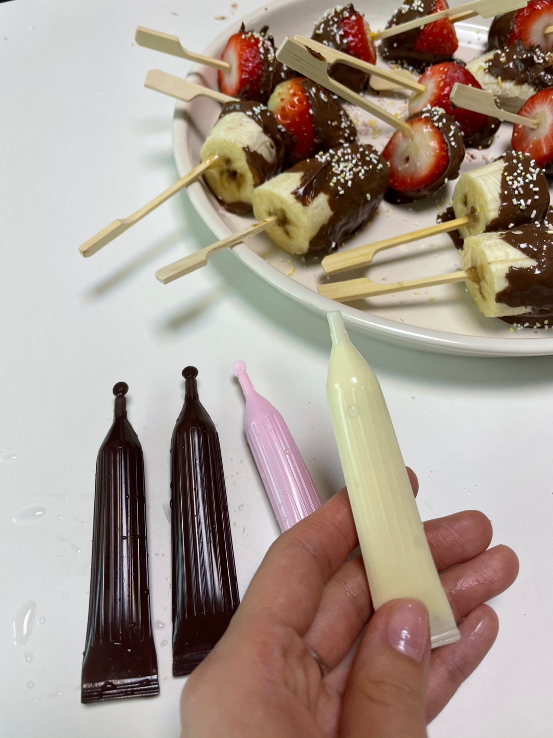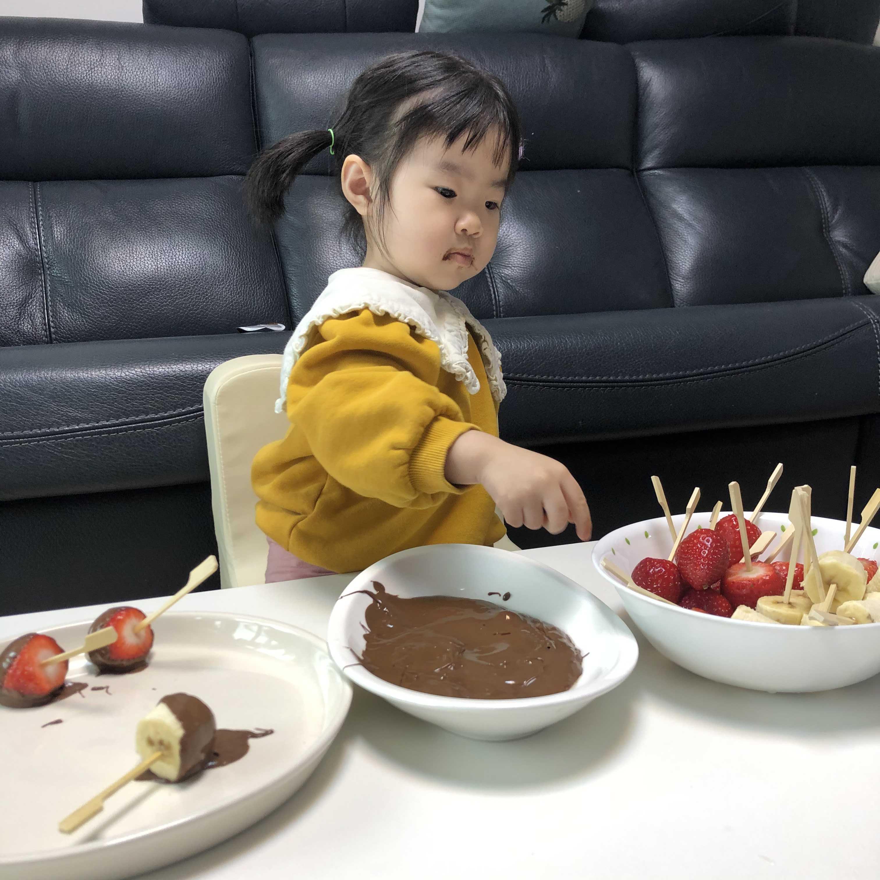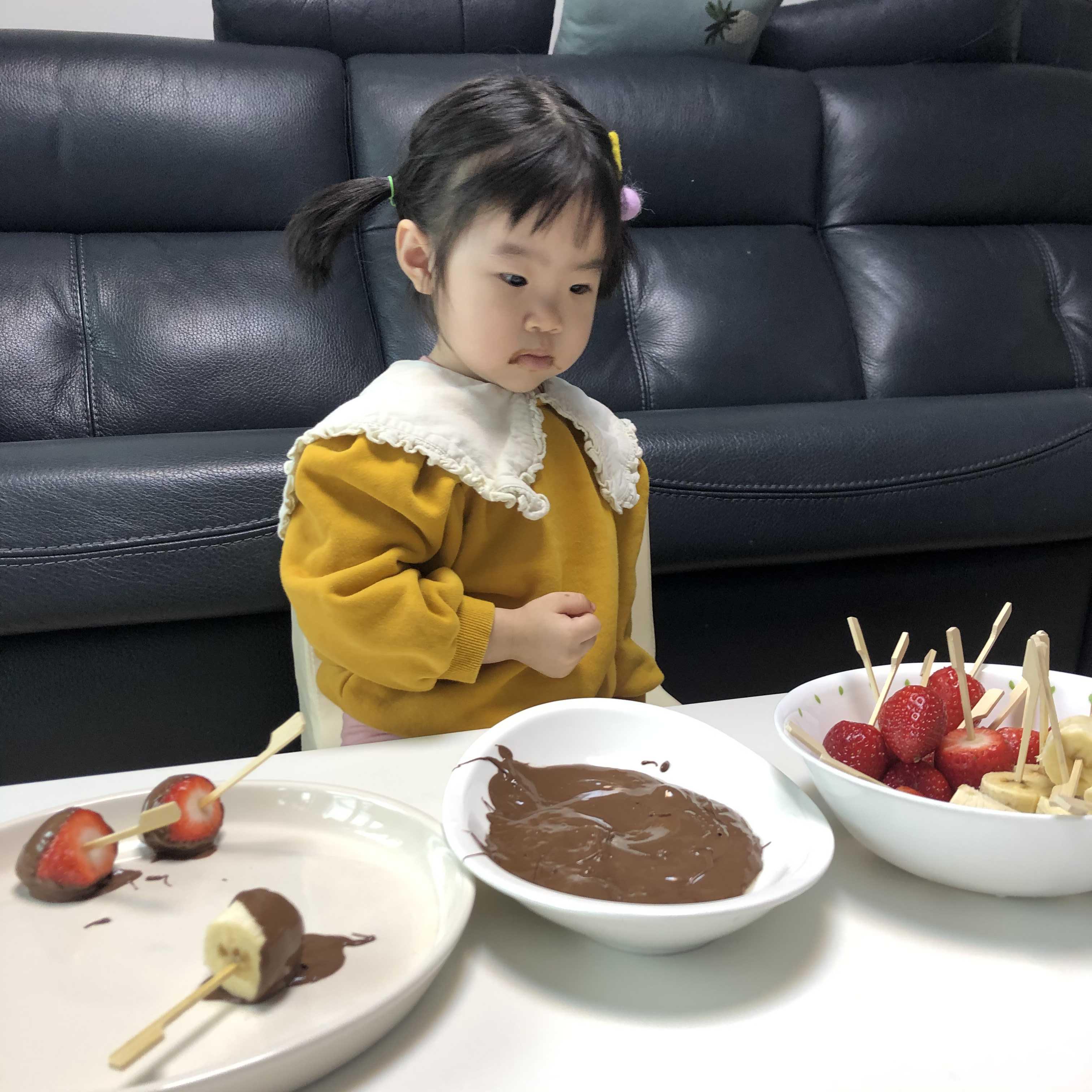 아이와 함께 발렌타인데이 딸기 바나나 초콜릿 퐁듀 만들기 (얼초 공룡만들기로 초간단 토핑 끝!)