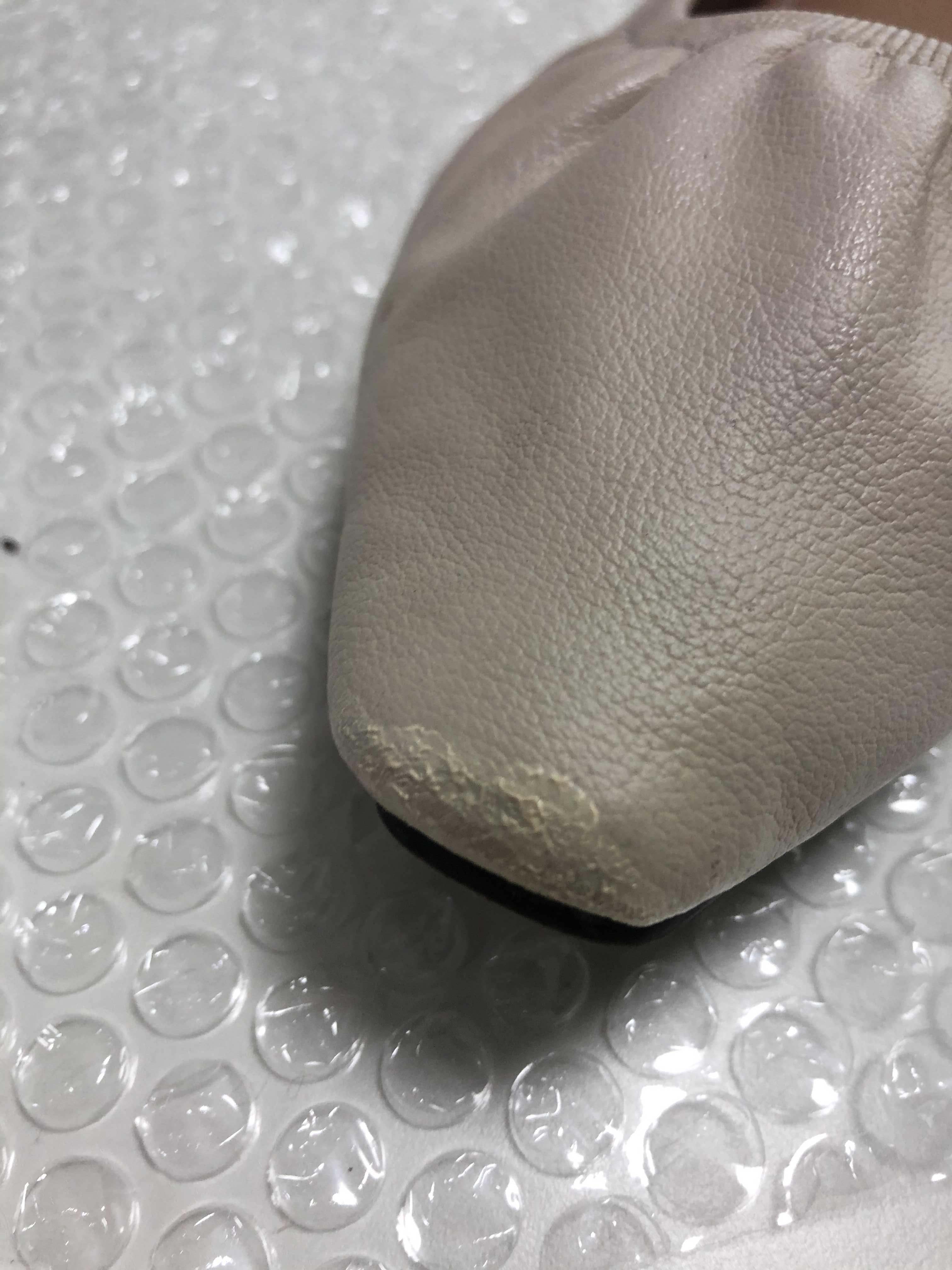 염색하기 전 구두를 보면 앞코부분이 많이 가죽이 까진 것을 볼 수 있습니다 ; (