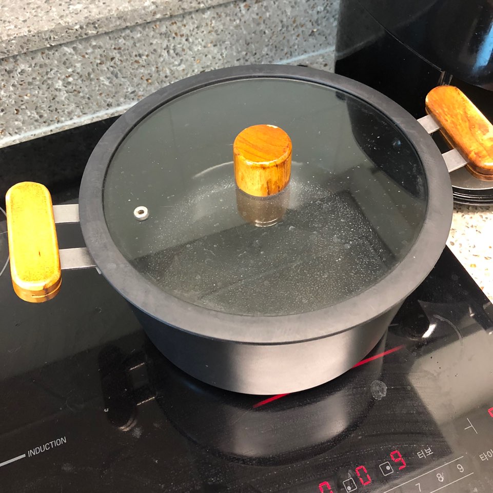 뚜껑을 닫아 놓으면 더욱 빨리 끓겠죠~?